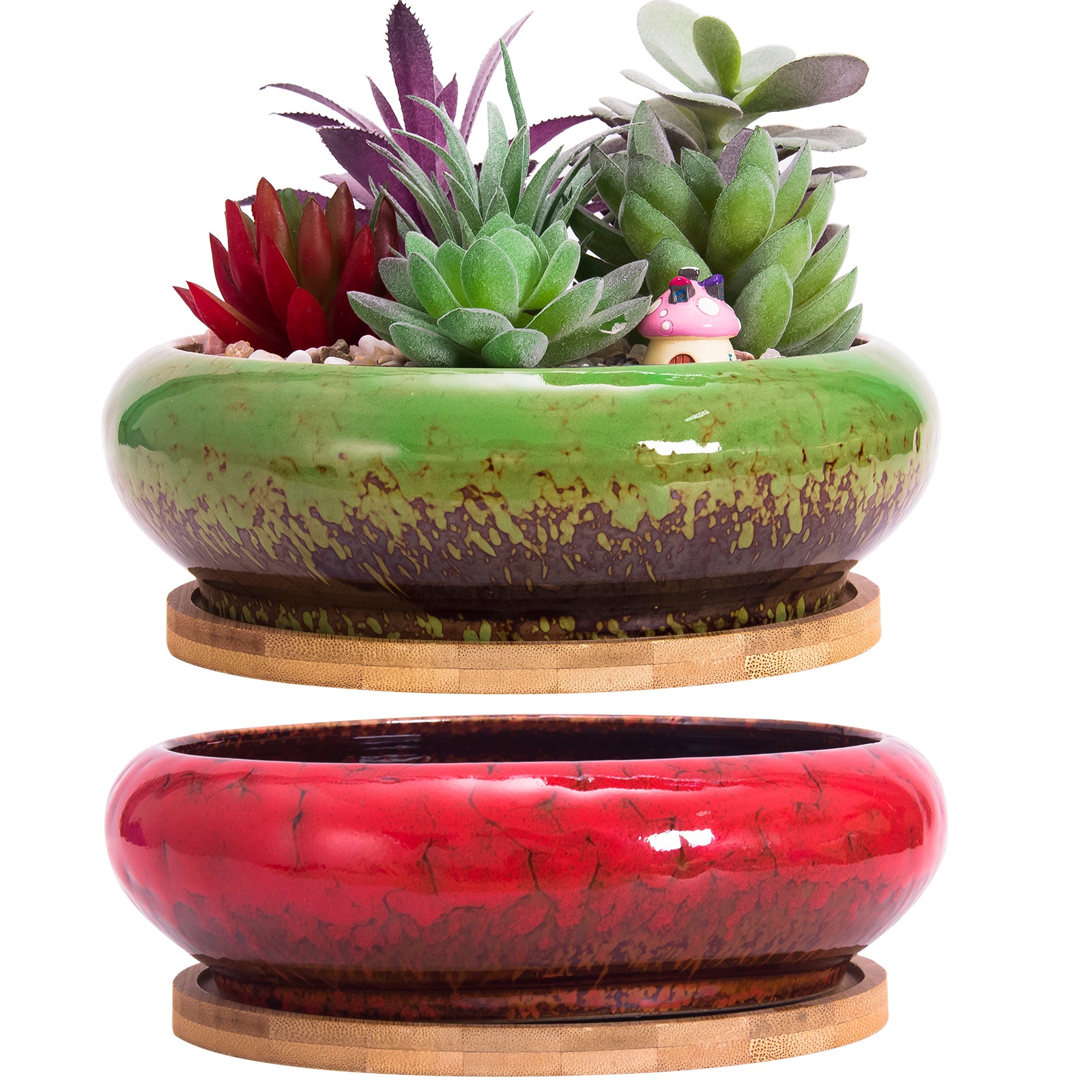 【Plant Pot Size】Inside diameter 6.1D(Inch)*2.17H(Inch); Package included: 2 PCS succulent plants pot, plus two free bamboo tray. For any quality problems, please feel free to let us know. Artketty will never disappoint any customer.(PLANTS NOT INCLUDED)
